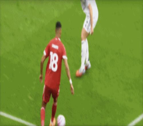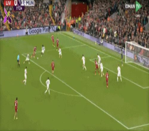 第65分钟,科尔克兹传中,萨拉赫禁区右侧无人盯防,左脚抽射竟然打偏。