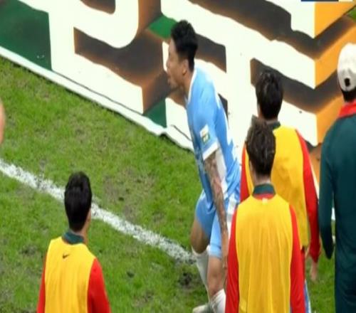 第7分钟,蒋圣龙禁区解围时,皮球弹在手臂上,麦麦提江没有表示!