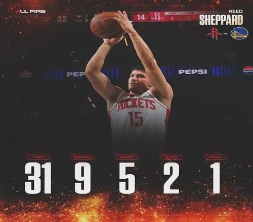 谢泼德本场得分、篮板和盖帽,均是个人NBA生涯新高。此前他最高得分是27(11月22日对阵掘金),最高篮板是7(11月17日对阵魔术),最高盖帽是1(10月22日对阵雷霆)。谢泼德是火箭队史第二年轻的30+8+5先生,仅次于申京。