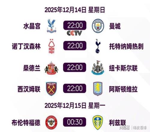 周末,英超第16轮展开争夺,周日一共安排了5场比赛,除了阿森纳之外,前四名的球队悉数亮相。维拉冲击11连胜的古老纪录,曼城则随时等待反超阿森纳,央视周末将直播两场豪门的比赛,敬请关注。