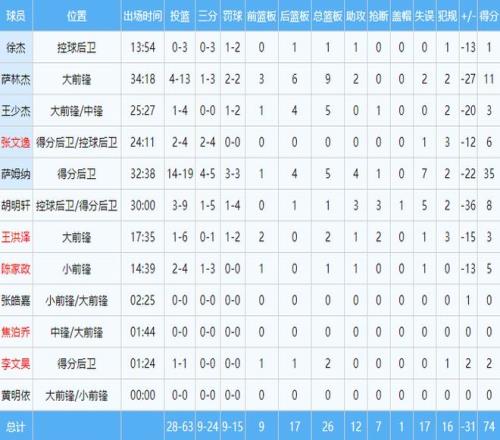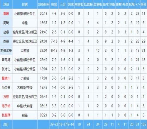 本场比赛,北京队进攻端多点开花,12名上场球员中有11人完成得分。其中,杰曼贡献全队最高的22分,另有9助攻5篮板。斯佩尔曼凭借第一节近乎完美的表现,得到21分10篮板。曾凡博强势复出,贡献18分3助攻2抢断。雷蒙贡献11分。广东队方面,萨姆纳个人独舞,空砍35分,难挽败局。