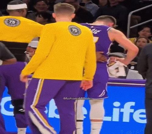 在比赛进行到第二节时刻,东契奇在一次进攻回合后,他出现受伤情况捂着左腿,湖人请求暂停,随后东契奇被替换下场,也是很快返回更衣室去接受检查。