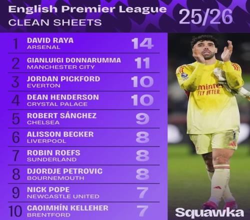 零封场次肯定是检验一名门将水平的关键数据,不过也要考虑扑救次数和扑救成功率等数据,但无论如何,拉亚的表现综合来看肯定是顶级的,且是阿森纳本赛季多线争冠的关键。