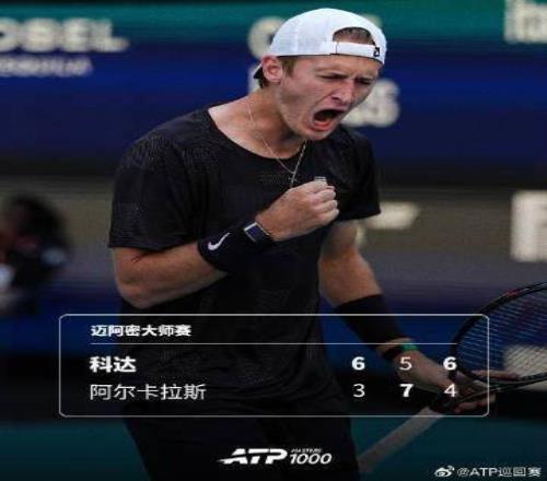 ATP1000迈阿密大师赛第三轮,阿尔卡拉斯1比2遭科达淘汰,爆冷止步32强。32号种子科达把握住第二个发球胜赛局,以6比3 5比7 6比4战胜头号种子阿尔卡拉斯,职业生涯首次击败NO.1,第三次跻身赛会16强。阿尔卡拉斯则吞下本赛季第二场失利。